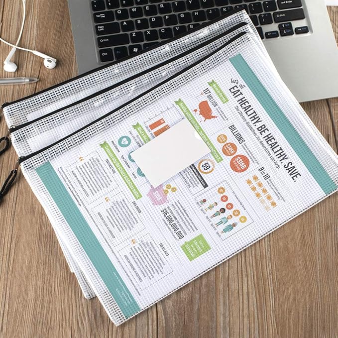 - Design with Zipper & Label Pocket: High-quality mesh document bags with Zipper is perfect for US letter / A4 size paper and other small items organized. Plastic document holders have a pocket for labels to distinguish documents easily.