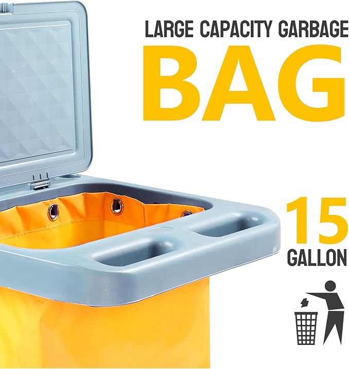 - 22.5 GALLON lARGE CAPACITY COLLECTING BAG- Equipped with a 22.5-Gallon bag ,Yellow Vinyl Bag and Cover. Capacity Waste Collection Bag and Garbage Lid that Prevents Odors Escaping