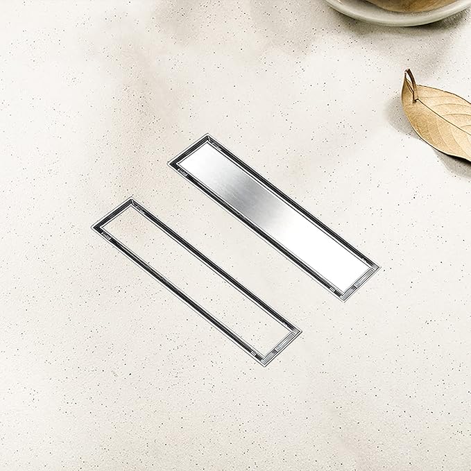 - [ 2 in 1 Tile in Panel ] Choose Elefloom Linear Shower Drain, you can get two use effects. Not only can you use the stainless steel panel, but also you can turn the stainless steel panel over to put the matching tile as you like, which will give you an invisible looking in your bathroom.