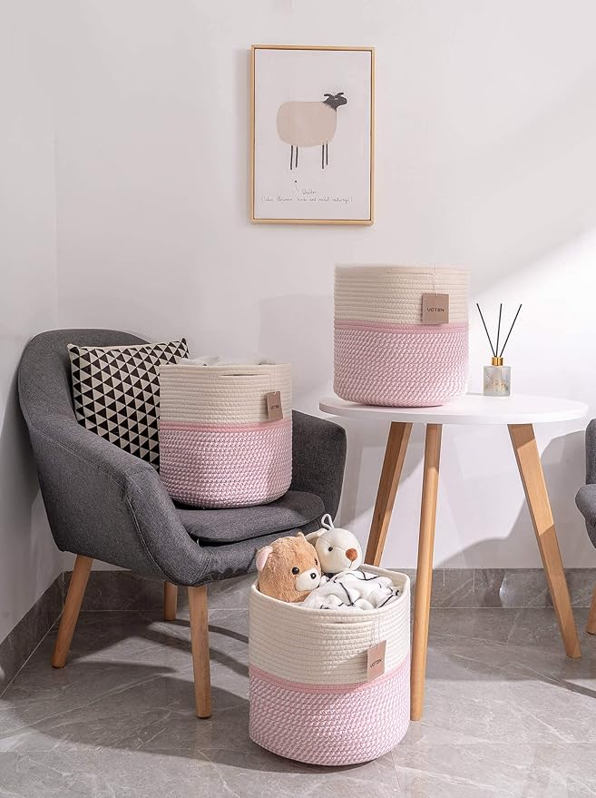 - Portable&Collapsible:NOTE-your rope basket bins will arrive folded,you can fill the bins with stuff for 2-3 days or iron them with steamer to reshape.Our cotton rope organizing bins baskets are soft yet sturdy enough to keep their shape