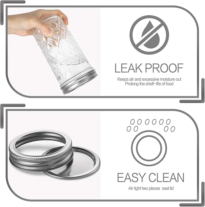 - FOOD GRADE:Each Canning jar is made from food grade materials.Great for food storage.Save time and effort with reusable glass jars that keep food flavor and freshness