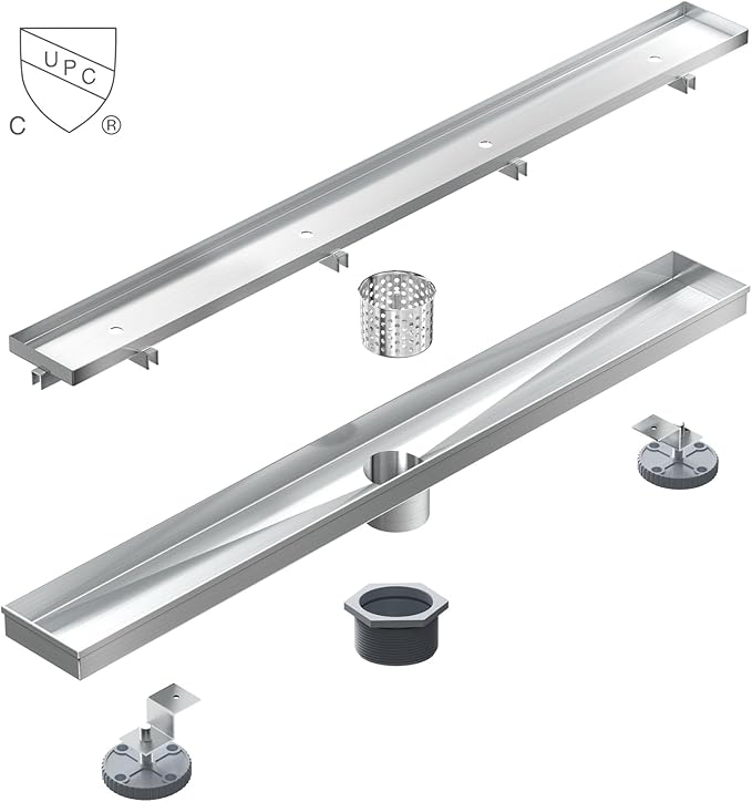 - Material & Reliability - This 32 inches tile insert linear drain is made of US ASTM standard 304 Stainless Steel. Brushed nickel surface finish, effectively prevents corrosion and rust. Linear shower drain with tile insert grate truly achieve invisible visual effects. Perfectly blend in the modern decor. The product has passed the WATERMARK and CUPC certification, ensuring safety and reliability during use.