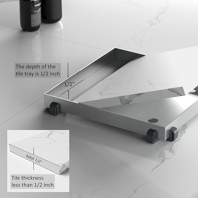 - Easy to Clean & Maintenance - Only need to embed the tile inside the tray can be firmly installed. Use the hook to remove the floor drain grate and hair strainer, easily to clean with water after using a period of time.