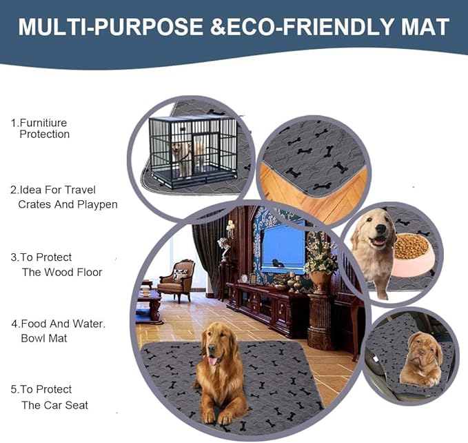 - Multipurpose - Reusable large - 48" x 72"dog potty pet training pads , use in dog kennel & dog crates for large dogs, training puppies pee in playpen or assisting incontinence elderly,as whelping pads & incontinence bed pads & waterproof floor mat for pets. They are ideal for protecting carpet,wood floor,furniture,sofa,car seats during travel.