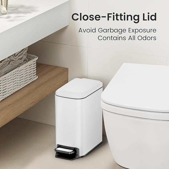- Sturdy Steel Pedal: Upgrade foot pedal of the bathroom trash can combines stainless steel tread with plastic material, making a lighter and more comfortable pedaling experience. Engineered to last over 150,000 steps, allowing you to step more than 20 steps a day for 20 years