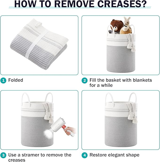- Multipurpose Storage Baskets: This cotton laundry basket can keep things organized in a stylish and decorative way. You can use them to store extra towels, blanket, clothing, toys, books, pillows or any other household items around the house