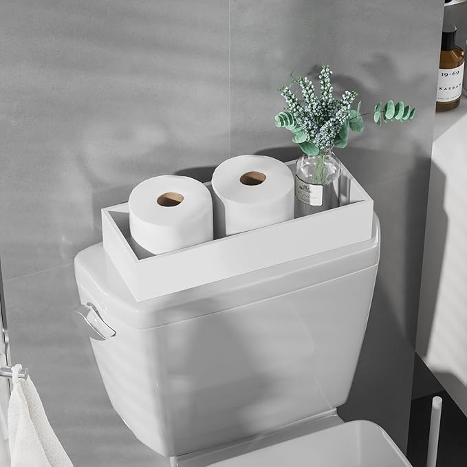 - Toilet Tank Tray for Bathroom: The toilet paper basket is attractive and a perfect fit for the top of the tank of the commode; Solve the problem that you are tired of setting toilet paper on top of your toilet when the current roll runs out