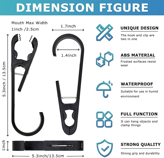 - EXCELLENT QUALITY: Hanging Clip is made of high-quality ABS plastic material, the built-in steel spring ensures a long-lasting elasticity, no odor, not rust, more durable than metal hanging clips, is hard to damage and waterproof.
