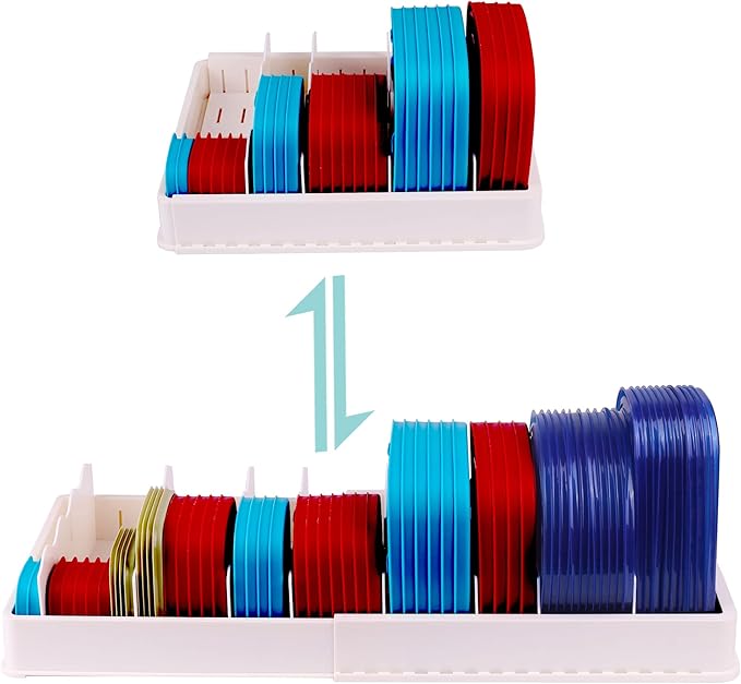 SWOMMOLY Expandable Food Storage Container Lid Organizer, Includes 8 Adjustable Dividers, 30 Preprinted and Blank Writable Labels, Extra Large