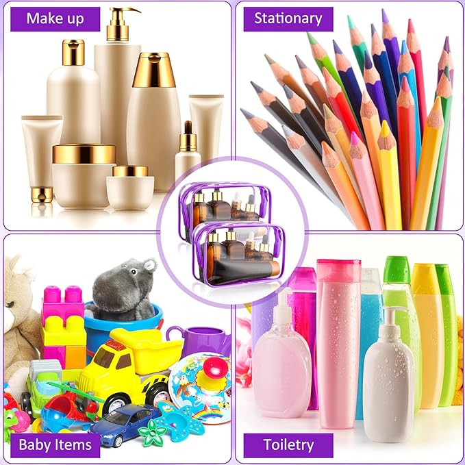 Weewooday 12 Pieces Clear Makeup Bags Cosmetic Storage Bags PVC Zipper Pouches Travel Waterproof Makeup Plastic Case for Women Organizing Toiletries Traveling Bathroom(Medium,Purple)