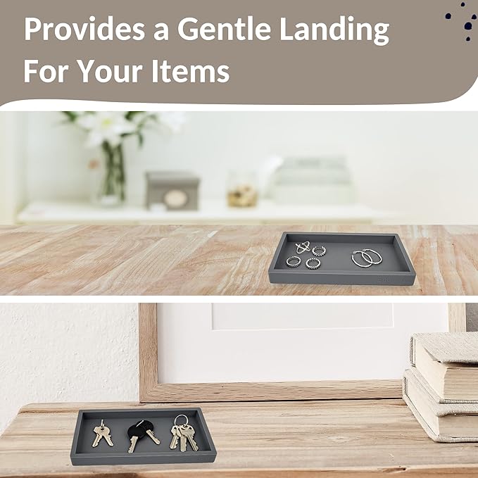 - Virtually Unbreakable – Relax knowing that unlike trays made of ceramic, resin, or bamboo, this flexible gray silicone tray is shatterproof- it’s great as a vanity tray, bathroom counter tray or kitchen sink tray for soap bottles. Great for kids’ areas too!
