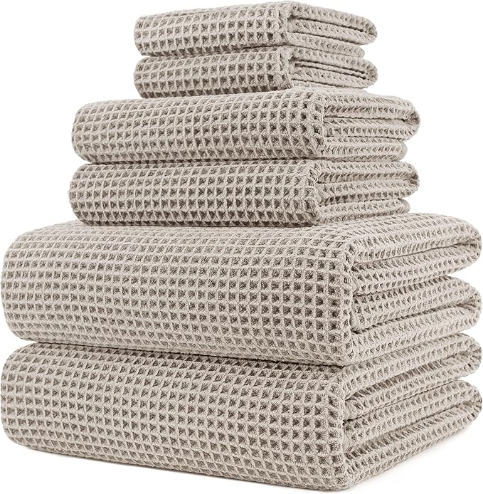 POLYTE Oversize, 60 x 30 in., Quick Dry Lint Free Microfiber Bath Towel Set, 6 Piece (Waffle Weave)