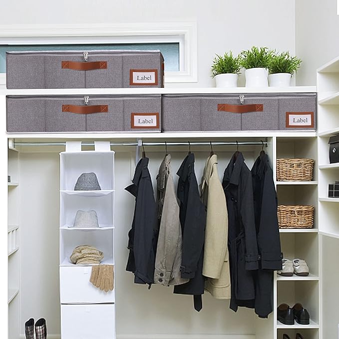 Yawinhe Under Bed Storage Containers, 4 Pack, Bin with Lids, Collapsible Closet Organizers, with Sorting Card Slot and 4 Leather Handles, for Blanket, Bedding, 31.5''Lx15.7''Wx6''H, Grey