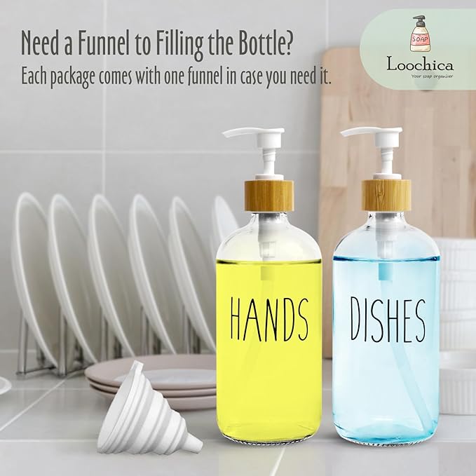 - Extra Funnels to Filling the Bottle - Having problems filling soap dispenser bottles? Each package come with one extra funnels, which would help filling or refilling bottle with different liquids. Get our products and find it out!