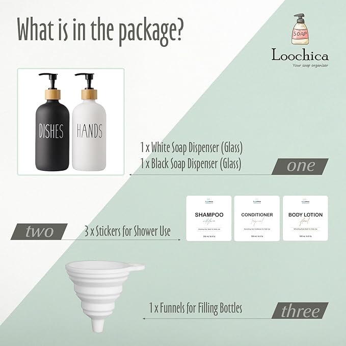 - Extra Funnels to Filling the Bottle - Having problems filling soap dispenser bottles? Each package come with one extra funnels, which would help filling or refilling bottle with different liquids. Get our products and find it out!