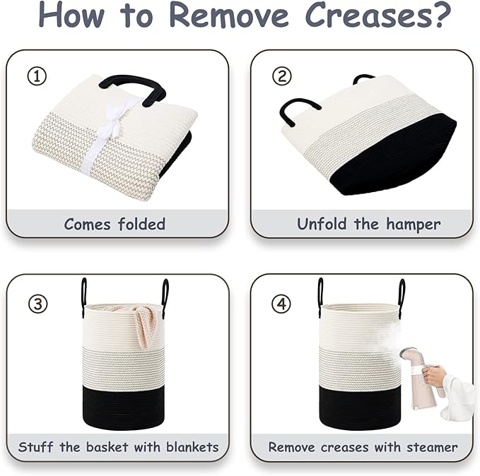 - ❤【Restore Elegant Shape】 To improve shipping efficiency, foldable woven rope hampers are packed compactly. You can put some blankets or small quilts in it and give it some time to regain its shape. Iron is a great idea to remove the creases.