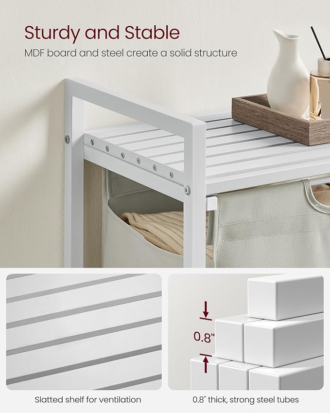 VASAGLE Laundry Hamper, Laundry Basket, Laundry Sorter with A Pull-Out and Removable Bag, Shelf, Metal Frame, 17.2 Gallons (65 L), 19.7 x 13 x 28.4 Inches, Cream White and Cloud White UBLH101W01