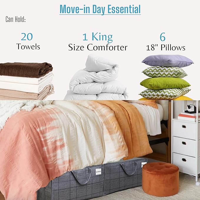 - Multi-Functional:Versatile and multi-purpose, suitable for moving, storing, transporting, laundry, camping, traveling, organizing, space-saving, under-bed storage, small trips, etc. Ideal for moving into your new apartment or college dorm room, storing winter clothes and bedding in your wardrobe, and keeping pillows and blankets clean and dust-free for guests during RV trips. Great for storage in your closet, garage, basement, attic, or storage unit.