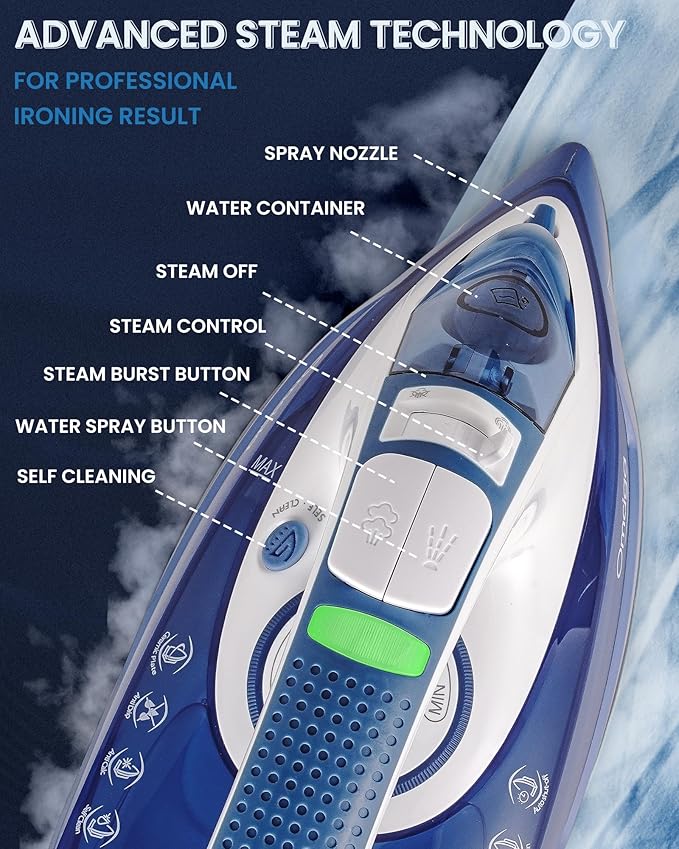 - ššš-ššššš ššššššš ššššššššš: his OMAIGA steam iron is equipped with a ceramic coated soleplate, which heats up quickly and evenly, gliding easily across various garments. It's super scratch-resistant, more durable, and easier to clean. The tapered tip easily navigates hard-to-reach corners, delivering a smoother and more accurate glide over all types of fabrics for 30% faster ironing.