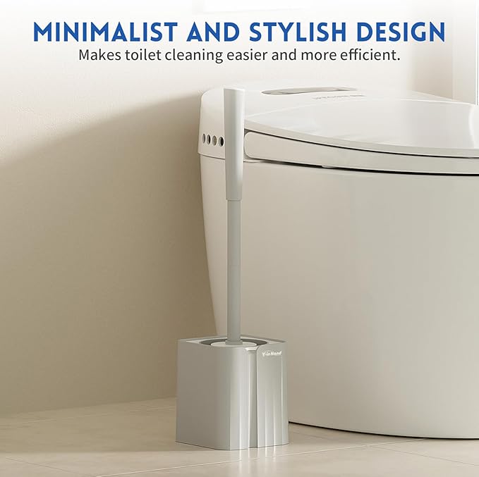 - 【Simple & Elegant Design】: Square shape and wave pattern hidden toilet scrubber brush holder design. Non-tipping and Non-dripping. The gray and white color block is a sleek and minimalist combination that suits a range of bathroom decor styles.