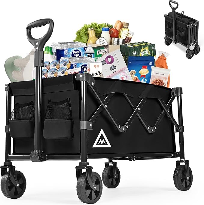 Wagon Cart Shopping Foldable Folding Collapsible with Wheels Big On Beach Garden Outdoor Grocery Heavy Duty Utility All Terrain Portable Wagons Carts for Groceries Sand Camping Sports Black