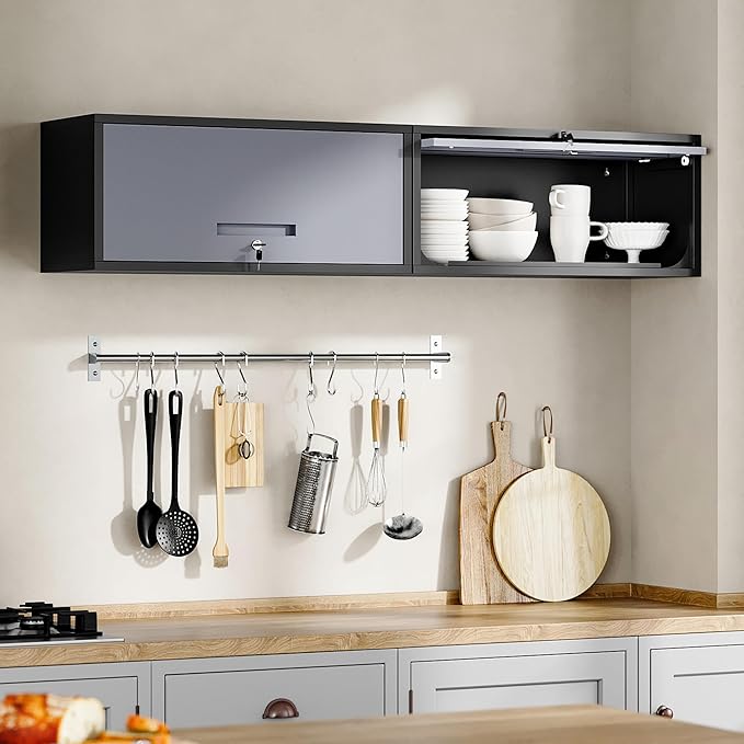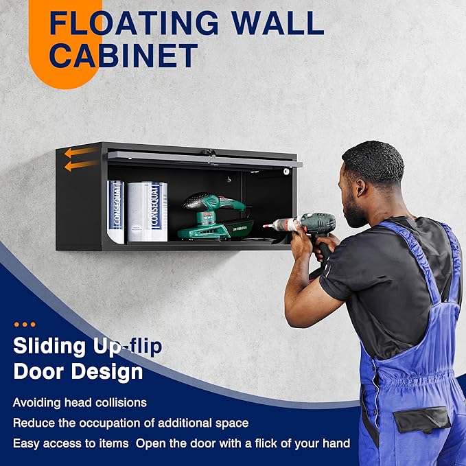 Yizosh Metal Garage Wall Cabinet with Doors, Wall Mounted Metal Storage Cabinet, Floating Garage Tool Cabinet for Garage, Basement, Kitchen, Warehouse (Black Gray, 13.7" H)