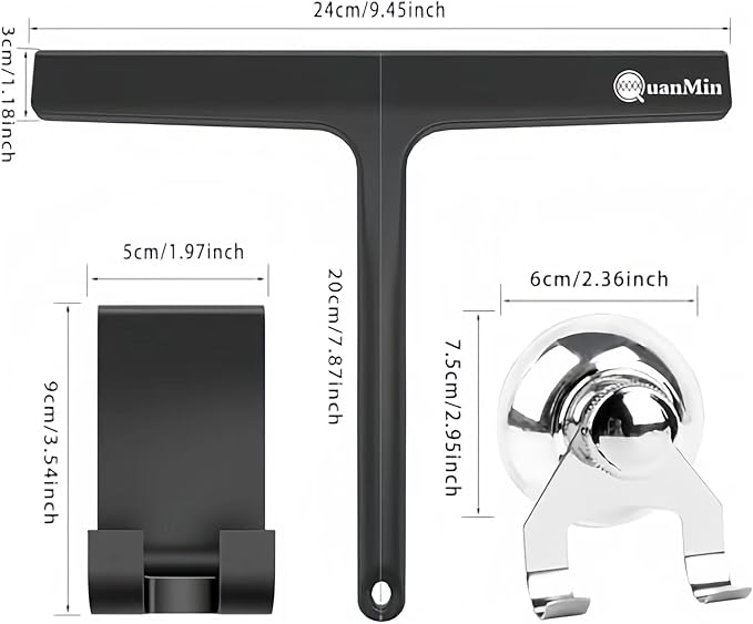 - 🙂EASY TO STORE: Tired of messy tools? This shower squeegee comes with reliable sucker hooks, plus a large hole for hanging on household hooks. The suction cups stick firmly to smooth walls, while S-hooks fit on doors or shelves. A must-have bathroom accessory, it keeps your space tidy without extra hassle.