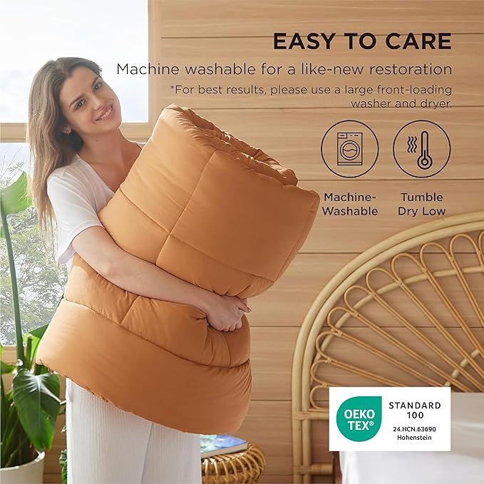 - EASY TO CARE:Please gently fluff the comforter and let it rest for up to 24-48 hours after taking it out of the box to ensure maximum fluffiness. Machine wash separately in cold water on a gentle cycle and tumble dry low for a like-new restoration