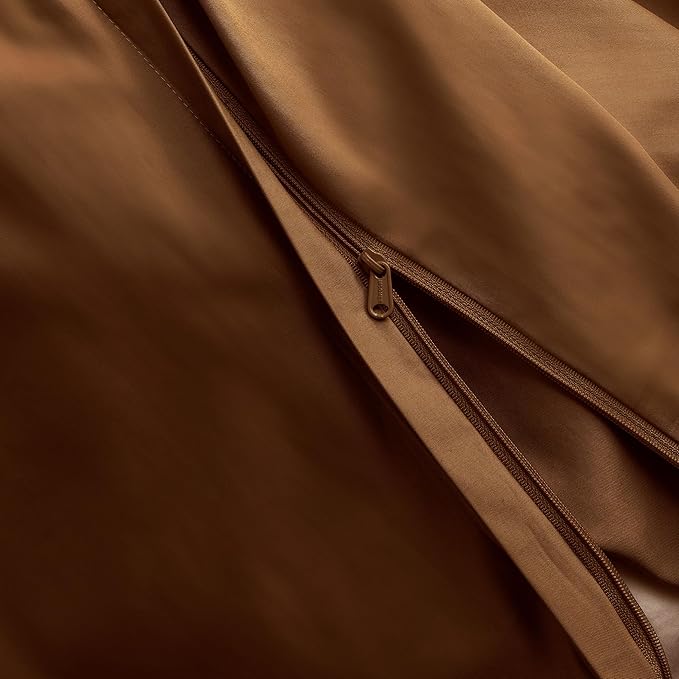 MooMee Duvet Cover Set 100% Extra Long Staple Cotton 600 Thread Count Silky Sateen Smooth Luxury Soft Breathable Durable Hotel Quality Bedding, 3 Pieces (Dark Orange, King 104"x90")