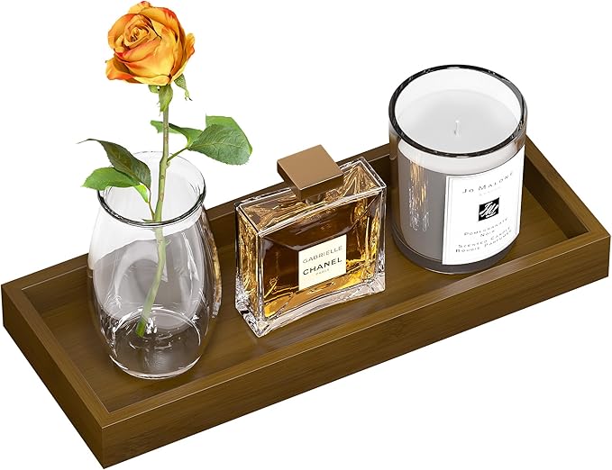 ZHWS Bathroom Vanity Tray for Toilet Tank, Perfume, Jewelry, Candle, Makeup, Decorative Tray, Kitchen Tray Counter Organizer for Soap Dispenser, Coffee Table Brown 11.3”L x 4.4”W x 1.14”H
