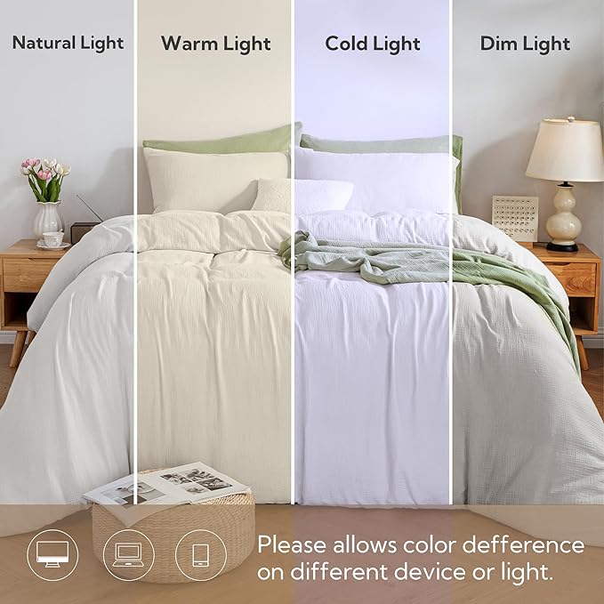- BREATHABLE & ABSORBENT: The fluffy structure of muslin material provides exceptional breathability. Heat conduction and moisture-absorption properties allow our comforter cover set to be used all year round, cool in summer for hot sleepers, and warm in winter.