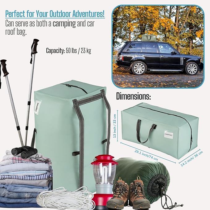 - Multifunctional - These bags excel in transporting camping essentials, featuring a large capacity suitable for sleeping bags, camping accessories, and dry food. Their water-resistant material safeguards belongings against moisture outdoors. The bag's heavy-duty material is designed to withstand wildlife chewing and tearing, offering added protection for your belongings. Additionally, they're ideal for compact spaces like college dorms and RVs, keeping items organized and tidy when not in use.