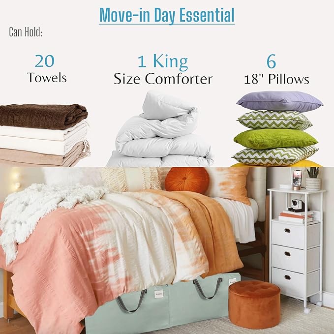 - Multi-Functional:Versatile and multi-purpose, suitable for moving, storing, transporting, laundry, camping, traveling, organizing, space-saving, under-bed storage, small trips, etc. Ideal for moving into your new apartment or college dorm room, storing winter clothes and bedding in your wardrobe, and keeping pillows and blankets clean and dust-free for guests during RV trips. Great for storage in your closet, garage, basement, attic, or storage unit.