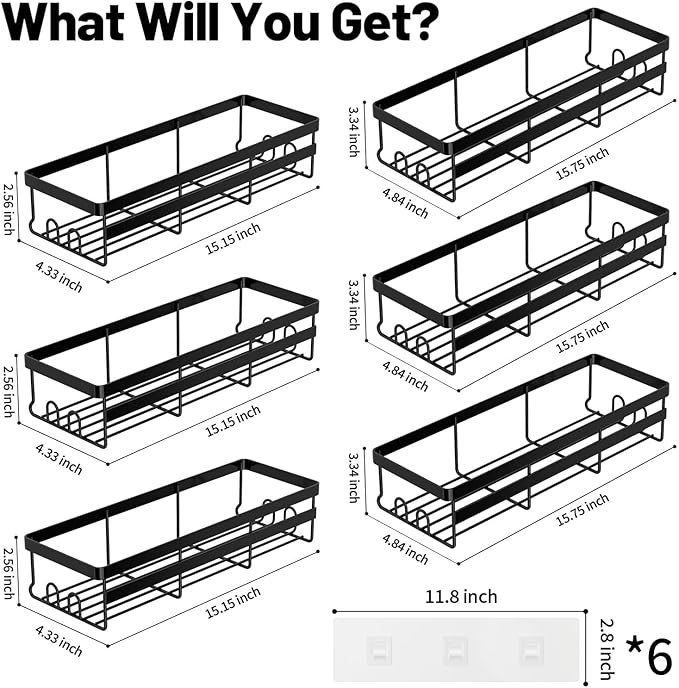 WOWBOX Shower Caddies 6 Pack - Adhesive Hanging Shower Shelf - Bathroom Organizers and Storage, No Drilling Stainless Shower Shelves for Home Decor, Bathroom Accessories (Large)