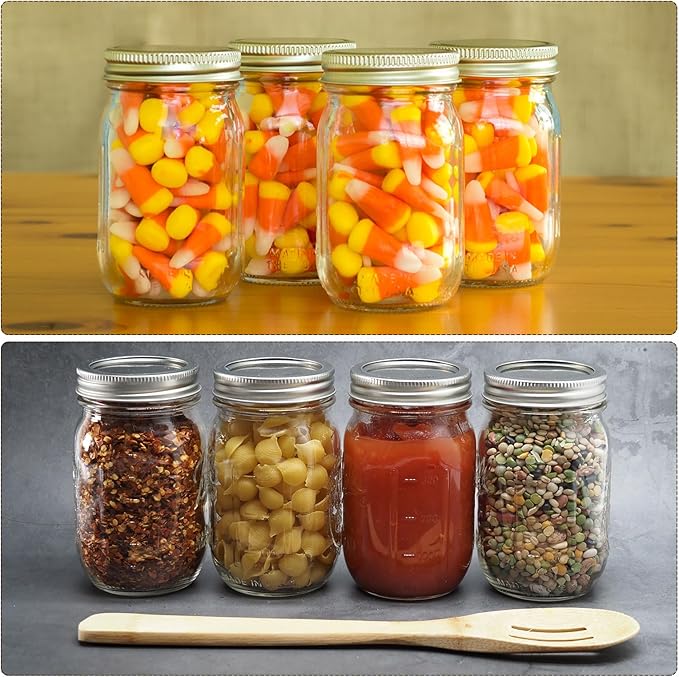 - [Good Material] - The mason jar lids are made of tinplate, with a built-in sealing ring, which can improve the sealing of the lid, keep food fresh longer, not easy to leak, and prevent bad odors.