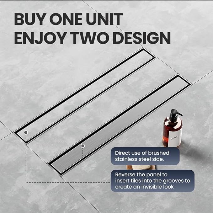 - Long-lasting Use: LISEEGO Linear Shower Drain, made of AISI 304 stainless steel, prevents rust and corrosion for long-lasting use.