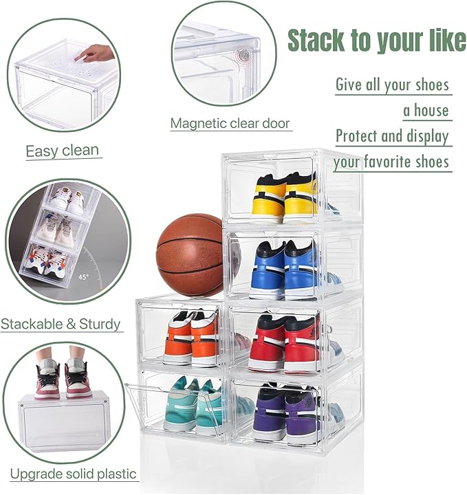 - Transparent Magnetic Suction Door: Shoe organizer box features a acrylic magnetic suction door with double magnets for a secure closure. The transparent door is easy to open and close with just one hand