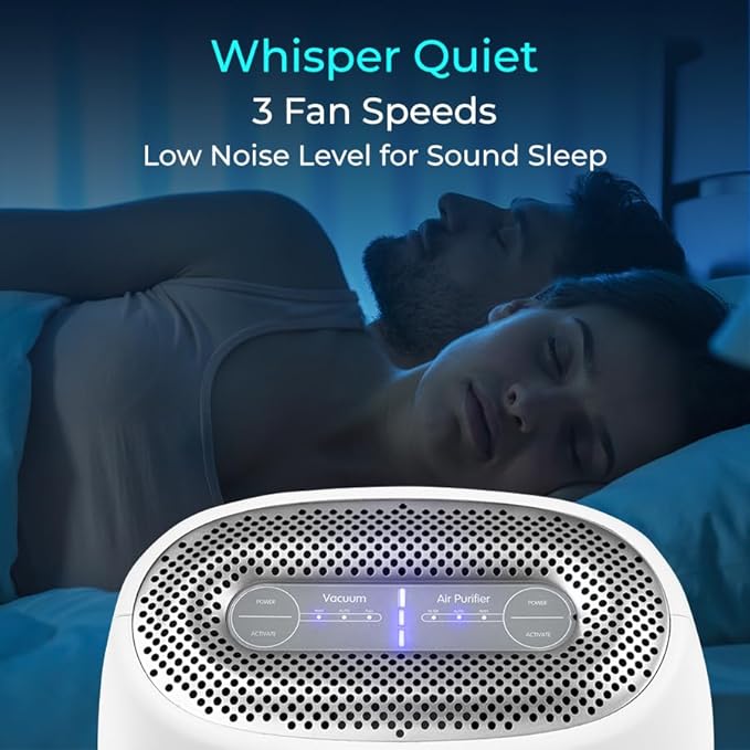 EyeVac Air 2-in-1 HEPA Air Purifier & Touchless Vacuum Automatic Dustpan - Ultra Fast & Powerful - Covers 600 Sq ft - Corded Canister Vacuum, Bagless, Automatic Sensors, 1000 Watt (White/Silver)