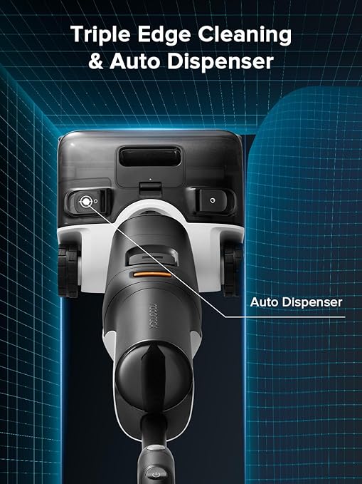 - Triple Edge Cleaning: Don’t let dirt hide in the corners! Our vacuum mop combo cleans right up to edges with less than 0.03 inches clearance, perfect for baseboards, stairs, and corners. It even dispenses cleaning solution automatically, so you can achieve that sparkling clean look effortlessly