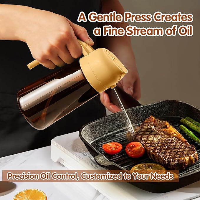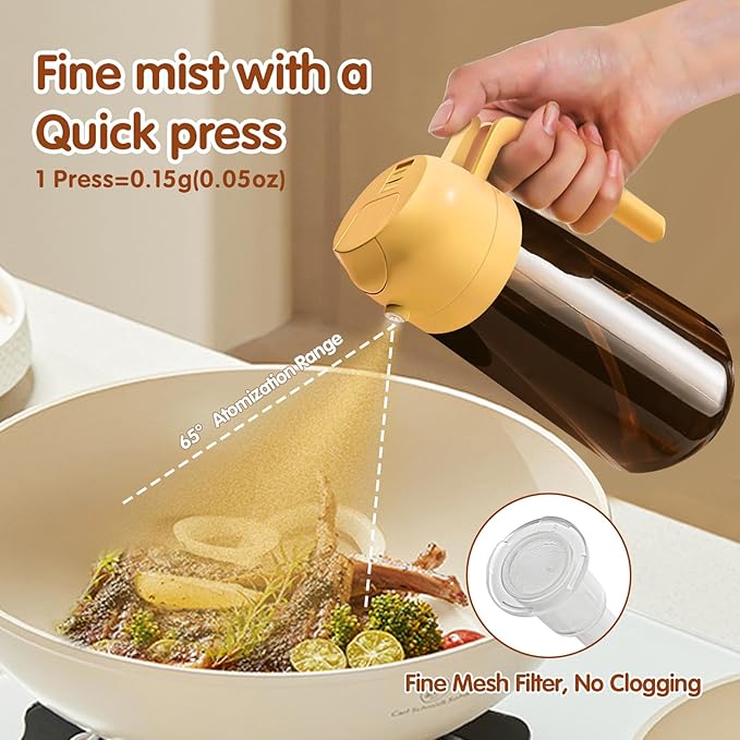 - 【Dual-Function Design & Multi-Purpose】: Oil mister spray bottle for cooking offers the convenience of both spraying and pouring oil, suitable for a wide range of food preparation processes such as salad dressing, griddle, roasting, grilling