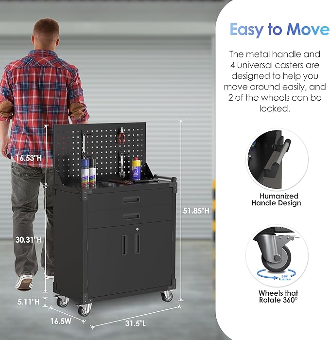 - Multi-Functional Tool Cart: The tool cart is not only suitable for garages and workshops, but also for other occasions such as home repairs, gardening, and outdoor activities. It can be used as a workbench, tool storage cabinet, or mobile workstation.