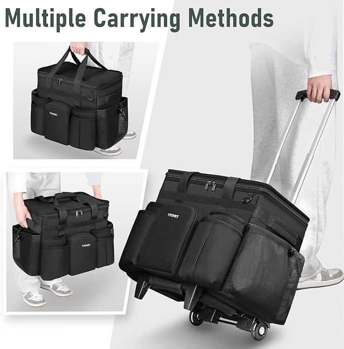 - Strong Load-bearing: Ytonet rolling cleaning caddy is exceptionally durable, crafted from 900D high-strength fabric and wear-resistant fibers that stand up to daily use. Reinforced hardboards on the sides and bottom ensure stability even under heavy loads, while thick padding cushions impacts to protect your tools and prolong the bag's lifespan, ultimately reducing replacement costs. Additionally, the top zipper can fully seal the bag opening, further enhancing security and dust resistance