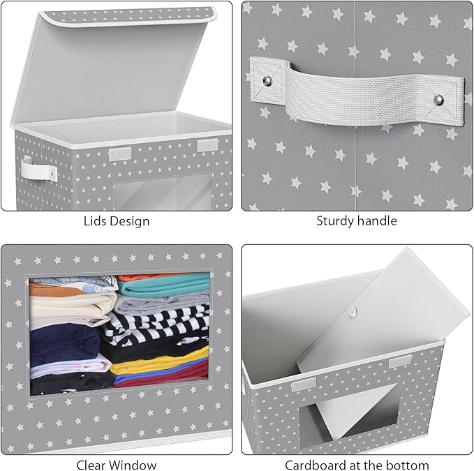 Univivi Fabric Foldable Storage Boxes [4-Pack] Large Collapsible Stackable Storage Bins with Lids, Closet Organizers and Storage Cube Basket for Home, Office, Bedroom (Gray Star, 17”x 12” x 12”)