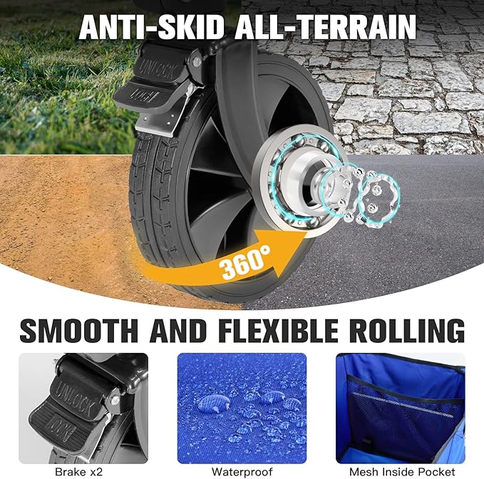 - 【Smooth & Versatile Wheels】-Muarch wagon cart is equipped with sturdy swivel wheels. These wheels are wear-resistant and anti-slip, featuring strong load-bearing capacity and excellent shock absorption, making them suitable for a variety of terrains. Additionally, the wheels are equipped with a braking system and quick-release design, highly convenient.