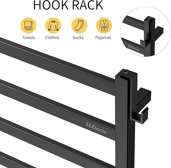 - Multifunctional Hook: According to your bathroom space and hanging requirements, the hook can be installed left or right, or forward. This flexible hook design allows you to separately store your dry clothes and wet towels, or your just-used shower brush and dry towels.