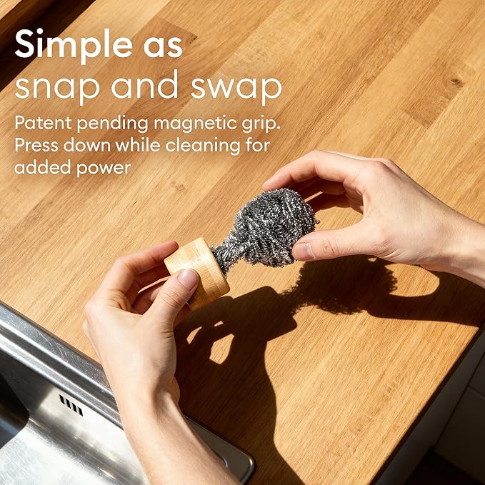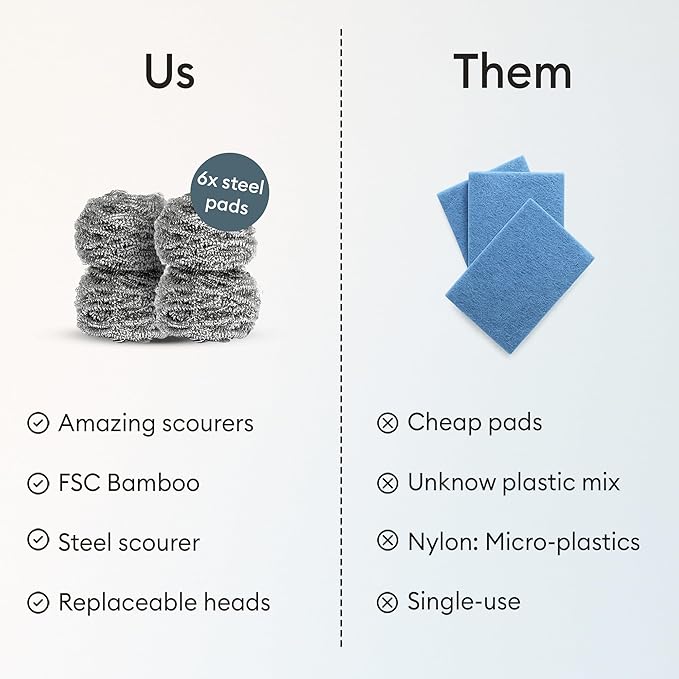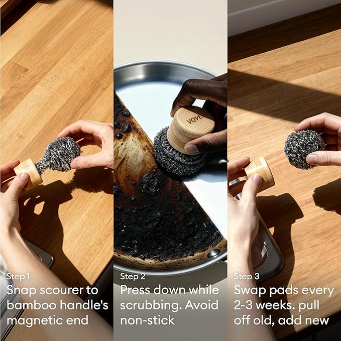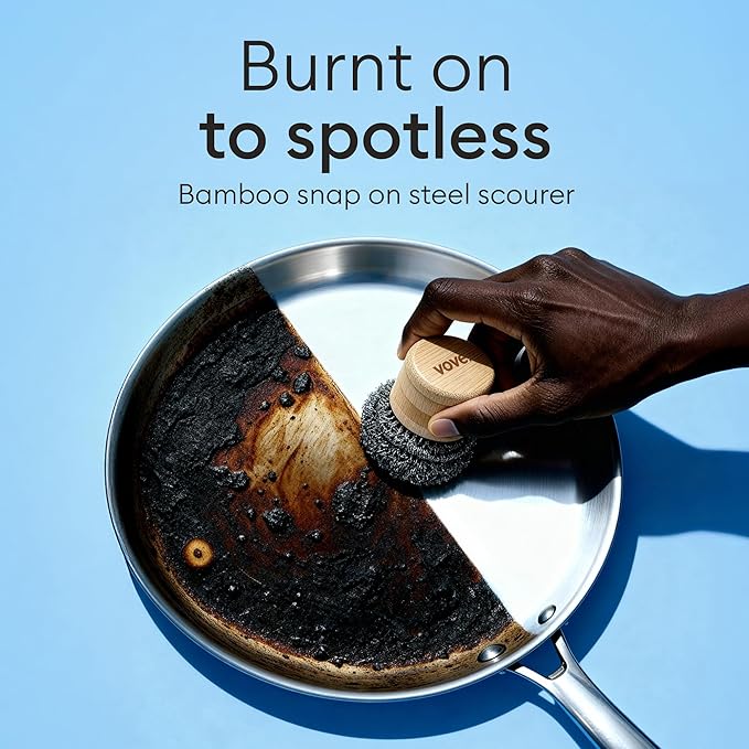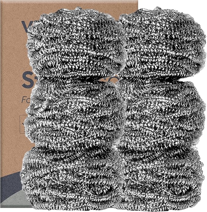 Vove Stainless Steel Scouring Pads, 6-Pack Heavy-Duty Metal Scrubbers for Cast Iron, Pots, Pans, Griddles, Grills, Stovetops, Sinks, Tough Grime Removers, FSC-Certified Packaging
