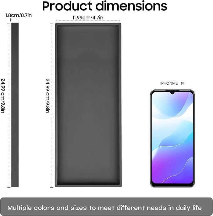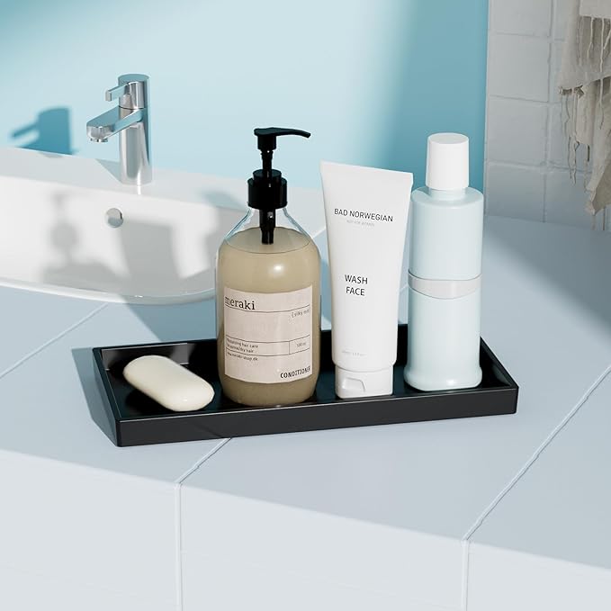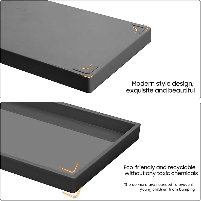 - Easy Clean:Waterproof design suitable for wiping with a damp cloth or rinse clean.Lightweight,resists warping in humidity and dishwasher safe.Recyclable,perfect as a bathroom counter tray,perfume tray or toilet tray