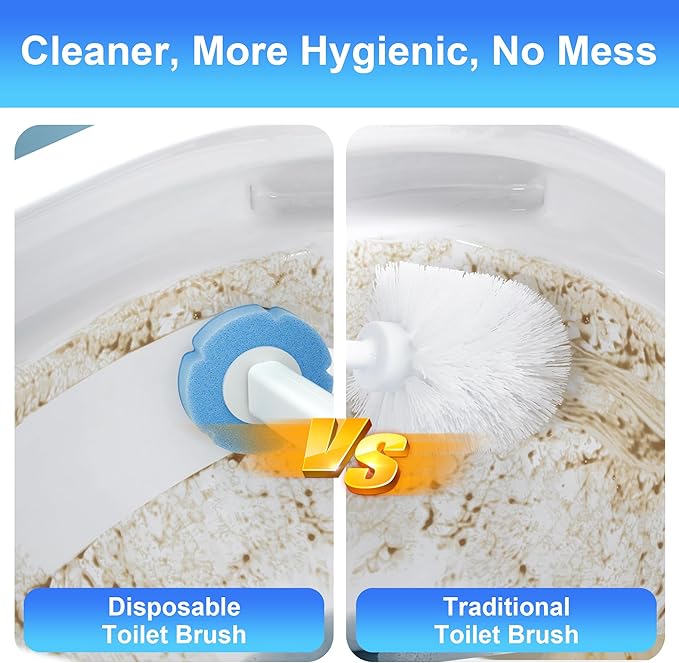 - [Hygienic and Effortless Toilet Care] Each disposable toilet brush is designed for single-use convenience. After cleaning, simply discard the brush, ensuring that you never have to deal with dirty, lingering brushes again. Ideal for keeping your bathroom fresh and hygienic. This hygienic solution is a must-have for every home, especially for those who value cleanliness and convenience