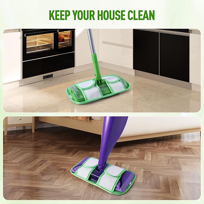 - Size of Mop Pads: The size of each microfiber mop pad is 11.6’’x5.5’’. Both are compatible with Swiffer WetJet and Sweeper mops and other microfiber mops with 10’‘ to 12’‘ mop heads.