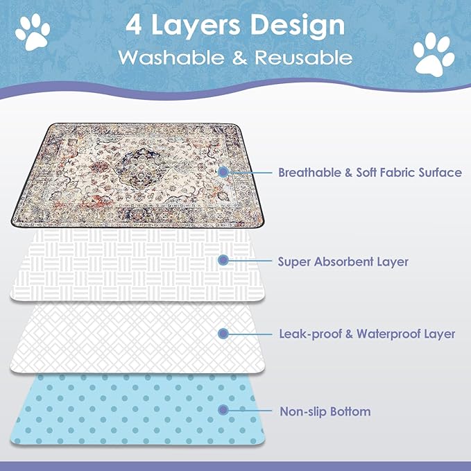- 【Stylish Pet Supplies】 Our Stylish washable puppy pads elevate your home decor. Featuring unique printed patterns on the surface, these pads add a touch of flair to any space. Functional and fashionable, they seamlessly blend into your home while serving the practical purpose of a reliable pee pad.